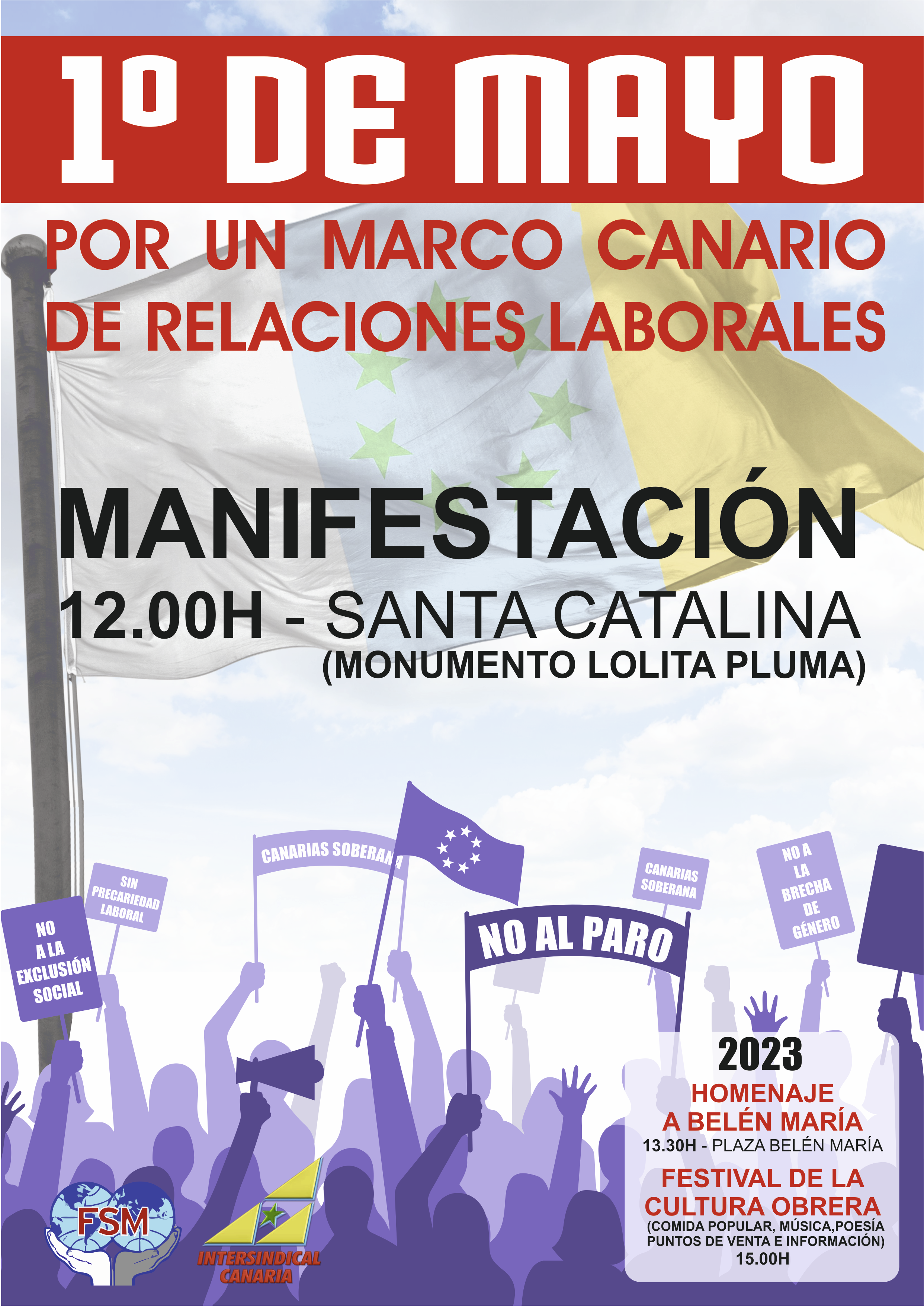 Primero de Mayo seguiremos exigiendo, como única solución a nuestro mercado laboral y a nuestra precariedad, un Marco Canario de Relaciones Laborales para combatir la inhumana sobreexplotación que suponen las relaciones impuestas por el sistema capitalista y el colonialismo. Porque sólo en dicho Marco será posible: