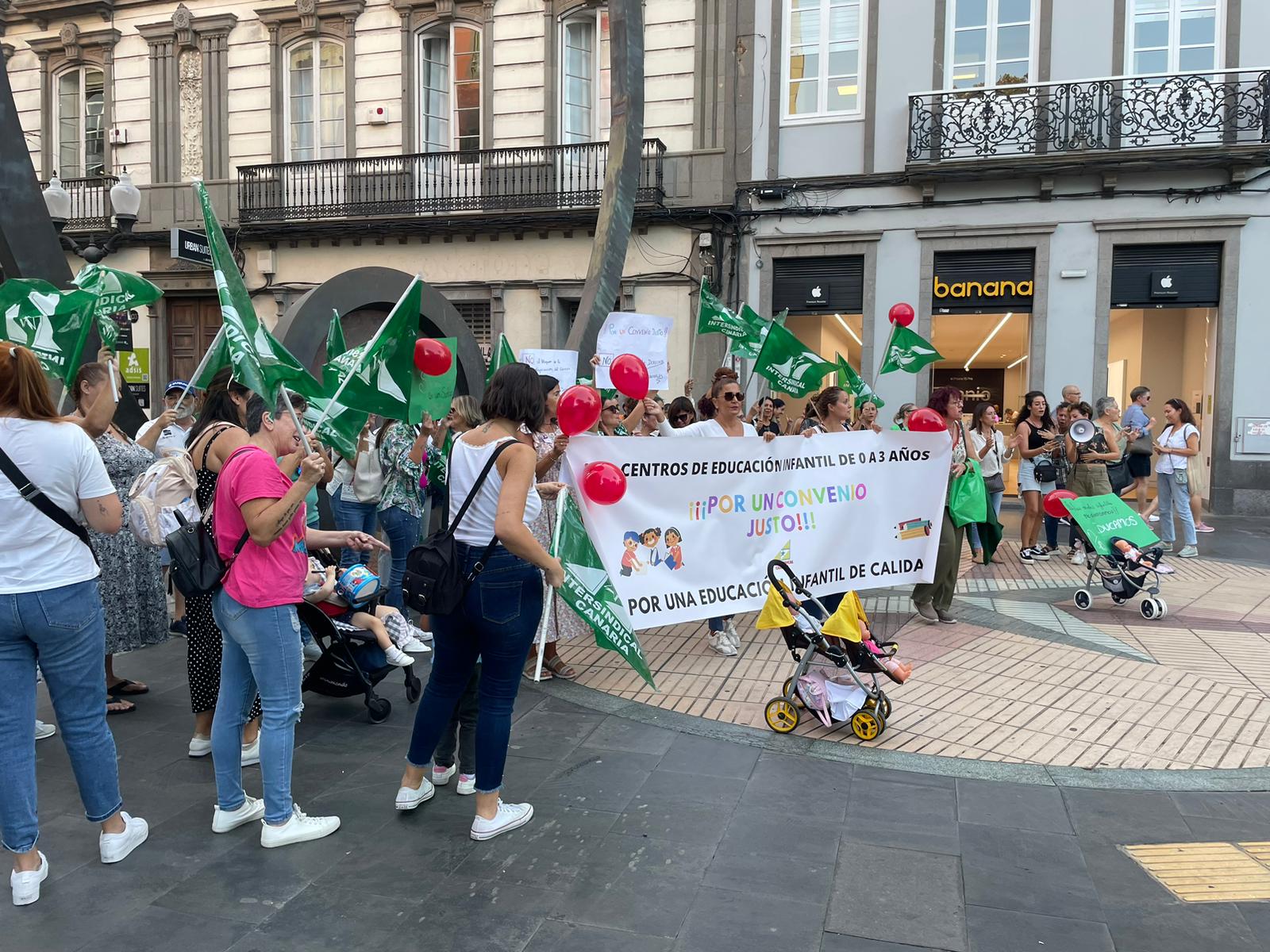 Desde Intersindical Canaria llamamos a la sociedad canaria fin de que se sume a estas proptestas para hacer llegar un mensaje alto y claro a la patronal de que exigimos que las personas que cuidan y educan a nuestros hijos han de tener un convenio Colectivo digno que dignifique la labor por ellas realizada.